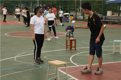 此次活动由理学院心理辅导员李鹏宇与学院扬帆社精心设计,活动包括:不倒森林、正反六人七足、你演我猜、搭桥过河、沙包危机等。活动开始,理学院团委书记、学工组长单江涛老师讲话,他强调,团体心理辅导是心理辅导的一种形式,望同学们能够在活动中观察、学习、体验,认识自我、探索自我、调整改善与他人的关系,以积极的心态克服困难、战胜挫折,收获生命成长的幸福。活动中,同学们精神饱满、热情高涨,奋勇争先,不仅看到同学们追求竞争和超越的精彩,更看到他们奋力学习之外的阳光和豪迈,尽管天气炎热,同学们都尽力完成每一个项目,将团结、协作、默契的精神进行到底,掌声、笑声、加油声充满了整个活动现场。