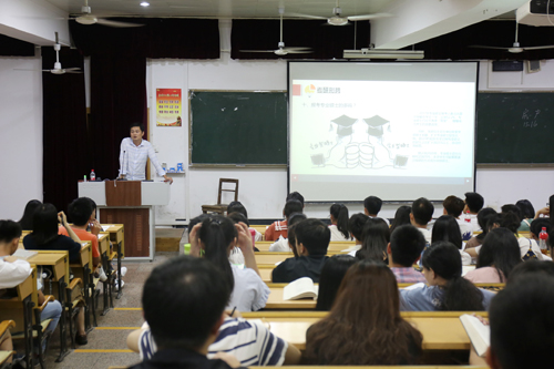 在动员大会上,老师们首先通过近四年全国大学生就业情况的数据分析,给同学们展示了当前全国严峻的就业形势,提醒学生要树立高度的危机意识,早做计划,为明年的毕业做好充分准备。其次,进行了考研动员。一方面老师们通过大量数据和事实说明了研究生学历相对本科学历在福利待遇、发展前景、就业层次、各地方人才引进政策等方面具有较大优势,激发学生对考研的兴趣。另一方面对考研压力、优惠政策以及录取率等学生普遍关心的问题,进行了逐一说明和解答,打消学生考研疑虑。最后,进行了就业动员,老师们建议已经决定直接就业的同学从眼观世界、内省自身、人职匹配三方面着手准备:眼观世界,从宏观、中观、微观三个层面上,了解社会经济、行业前景、企业发展,做到顺势而为;内省自身,从兴趣、性格特点、价值观三个方面深入反省了解自己,结合自身性格特点和价值取向,选择合适的行业与就职企业;人职匹配,通过对目标岗位的了解,有针对性的准备自身知识、技能与综合素质,做到个人与岗位的匹配。