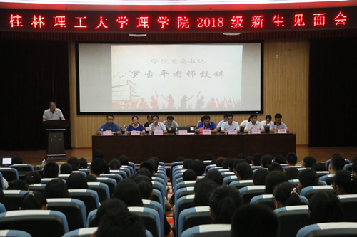 9月9日下午3点30-5点,理学院于雁山校区图书馆报告厅举办2018级新生见面会,理学院党委书记罗雪平、副院长唐国强、副院长张富文、副院长蒋远营老师、党委副书记孙巍老师、院长助理、全体辅导员、各班班主任及 18级新生一同出席会议。会议由学工组组长杨剑老师主持。