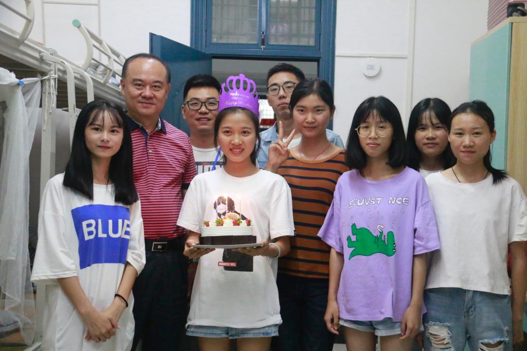适时恰逢吴忠平、梁海艳两位新同学生日,周章明书记与连漪院长分别为他们送上蛋糕与生日祝福,并勉励两位同学踏踏实实,勤奋努力。
