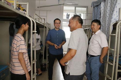 学院领导一行人首先来到3B栋女生宿舍,在走访中,罗书记仔细询问大家来自哪里、入学报到是否顺利、是否适应学校环境、入学之后有何规划等。在与学生交流过程中,同学们分享了自己在这里住宿的感受,罗书记也分享了自己上大学时候的宿舍生活,让同学们感到格外的亲切。罗书记强调同学们在进入大学之后要尽快适应大学生活和学习,要学会做人、学会做事、要相互帮助、相互理解。