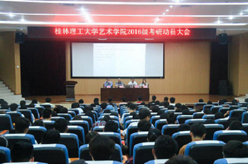10月7日晚上7:30,艺术学院在雁山校区图书馆报告厅面向2016级全体同学召开了考研动员大会,学院党委副书记苑守瑞,2016级辅导员陆琴参加本次大会,并邀请2018级研究生白辰同学与章鉴烽同学为同学们进行考研经验分享。会议由2016级辅导员陆琴主持。