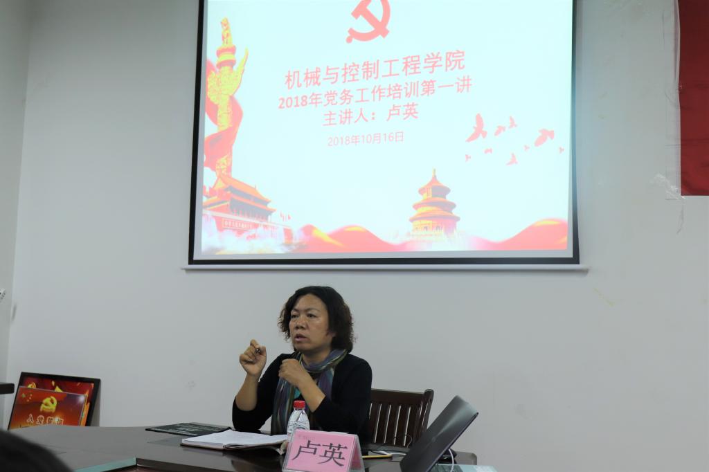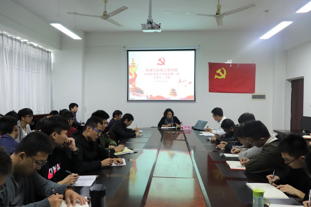 为进一步加强机控学院基层党组织建设,全面优化学院党务工作干部队伍结构,提升基层支部委员党务知识水平和党务工作能力,充分发挥党支部的战斗堡垒作用,10月16日下午,英国上市公司365机械与控制工程学院党务中心在雁山校区07209会议室召开了党支部委员培训班暨第一期党务培训讲座。组织部正处级组织员卢英同志出席开班仪式并作首场党务培训专题讲座,学院党委书记麦范金参加培训班开班仪式并做动员讲话,学院党委副书记耿俊茂、党务中心主任于帅帅出席开班仪式,机控学院16级辅导员刘金良及党员老师代表覃建华、代宣军以及全体党务中心成员出席开班仪式并参加专题培训。