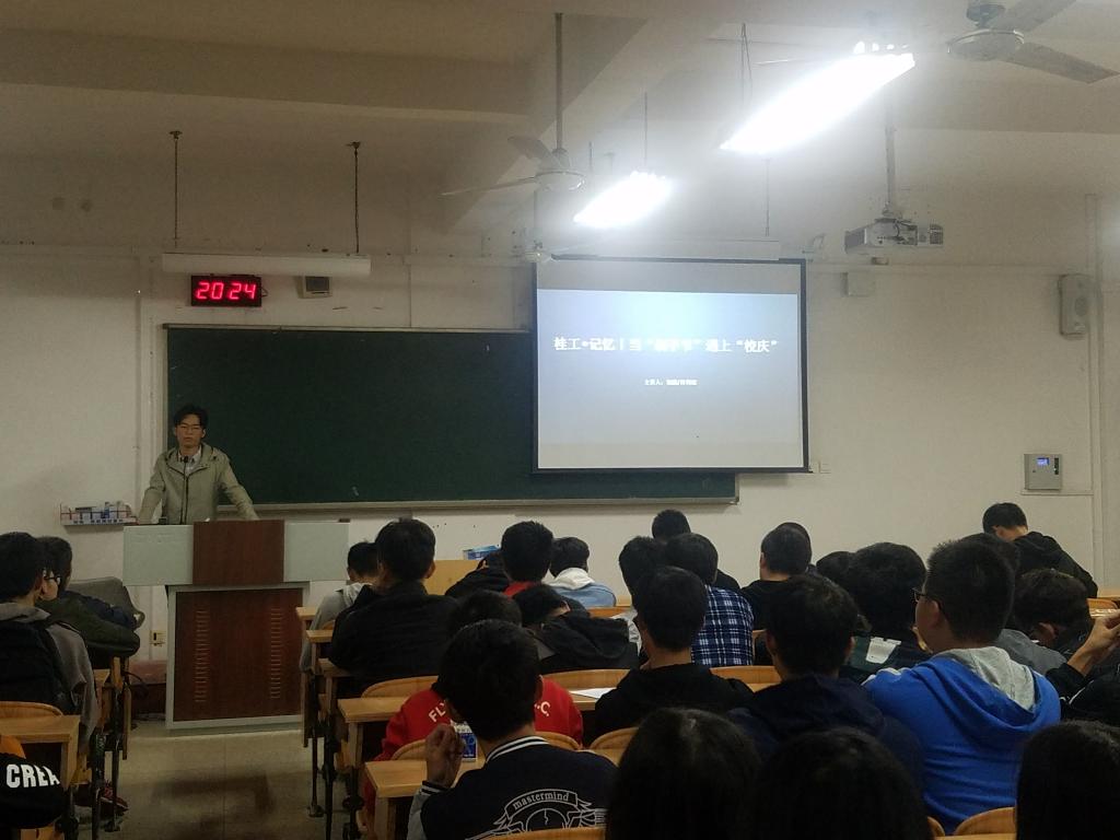 为庆祝学校成立六十二周年,促进2018级新生知校史明校情,信息学院于11月11日校庆日晚19:30,在雁山校区教六栋组织学院全体2018级新生同上一堂“知校史、明校情”学习课,本次学习课由学院学工组长饶蠡和辅导员肖利斌主讲。