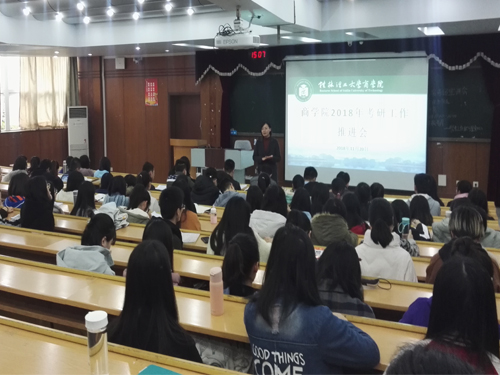 2018年11月20日下午,商学院2019届学生考研工作推进会在9401举行。商学院党委副书记沈菲菲、2015级辅导员贺旋、肖静参加了本次会议。