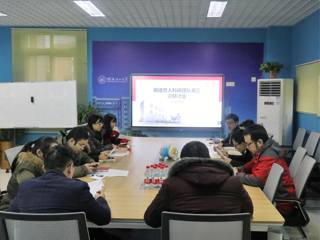 2019年1月8日下午四时,网络育人科研团队在雁山校区行知楼B416召开第三次科研学术沙龙,本次沙龙以问题为导向,以建设学术共享共建型科研团队为目标,旨在聚焦研究方向,拓展研究思路,团队全体成员参加。