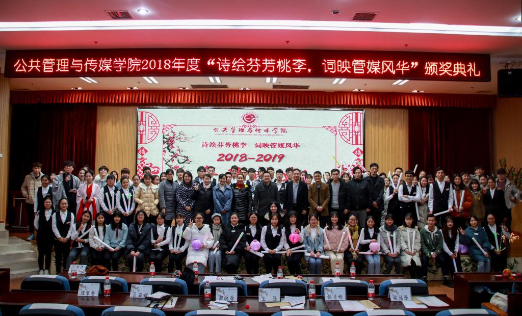 为大力弘扬公共管理与传媒学院的优良学风,充分发挥优秀学生的模范带头作用。2019年1月8日下午,公共管理与传媒学院“诗绘芬芳桃李,词映管媒风华”年度颁奖典礼于雁山校区图书馆报告厅隆重举行。学院党委书记陆平、党委副书记汪晟、学工组组长、2018级辅导员陈俊乐、2015级、2017级辅导员时香丽以及各专业的老师和学生代表共同参加了本次活动。