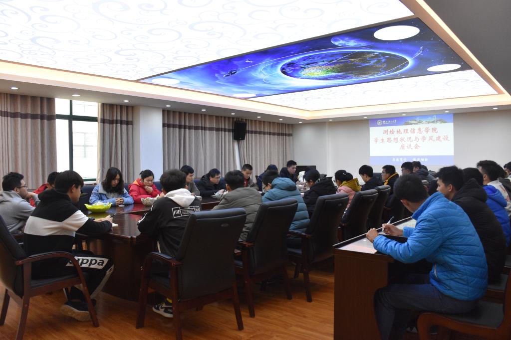为深入了解开学初学生的思想动态,了解学生的真实需求,进一步完善学院教学工作与学生工作相关举措,提升育人成效,3月6日下午,测绘学院在雁山校区02226会议室召开新学期学生思想状况与学风建设座谈会。学院党委副书记周明权、副院长任超、教师代表以及全体辅导员出席了座谈会,全院各年级学生代表40余人参加了会议。会议由院党委副书记周明权主持。