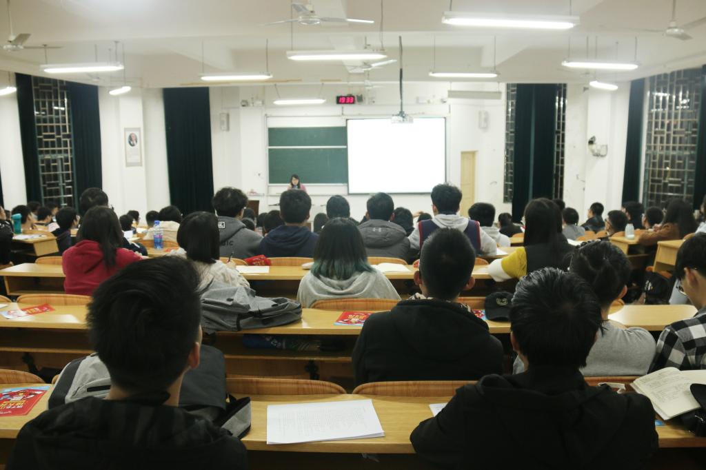 首先,老师为同学们介绍了英语四级考试的分值、题型、考试时间,让同学们对四级考试有了初步的认识;接着,老师指出每个同学备考英语的过程中必备的英语真题和笔记本,四级备考的核心是“真题”,以及背诵词汇的重要性和技巧性,并进行了现场演练——现场朗读和背诵英语单词。最后,老师鼓励每个同学根据自己的英语学习情况,设立英语学习目标,把英语学习放在每一天的学习中,养成良好的学习习惯,在不断地英语学习中强化英语知识,提高英语水平,进而顺利通过英语四级考试。课堂上,同学们认真听课,学习热情高涨,积极回答老师的问题,与老师进行互动和交流,现场学习氛围十分浓厚。