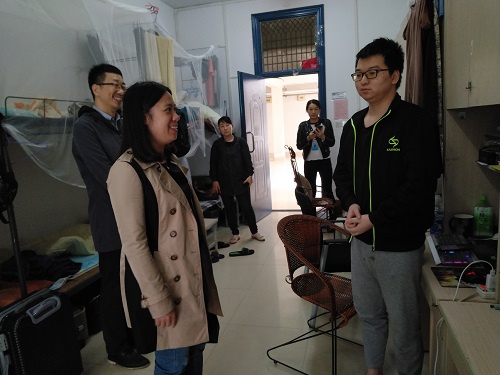 在学生宿舍中,陶剑飞副书记与同学们进行了交流,尤其是在存在安全隐患的宿舍,详细询问了学生的日常生活状况以及对宿舍安全的意见和建议,并提醒同学们一定要加强安全防范意识,营造一个安全、健康、舒适的学习和生活环境。
