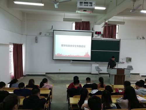 为加强大学生的安全责任意识,引导同学们高度重视宿舍安全问题,充分发挥学生骨干在开展相关学生工作中的重要作用。5月8日中午,理学院在05314教室召开学生宿舍安全专题会议,理学院各年级辅导员,各班班长、安全委员以及宿舍长等200余名学生骨干参加,会议由2018级辅导员舒强老师主持。