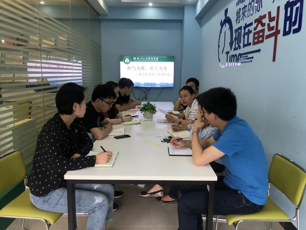 按照学工处第十二周主要学生工作安排的要求,商学院学工办于2019年5月17日在屏风校区7303会议室召开“担当为要、实干为本”学生工作专题研讨会,结合学工处发布的本学期以来“三早一晚”辅导员例行出勤的情况、辅导员落实“十个一”工作情况以及当前安全稳定工作相关要求等开展工作研讨和作风整改。