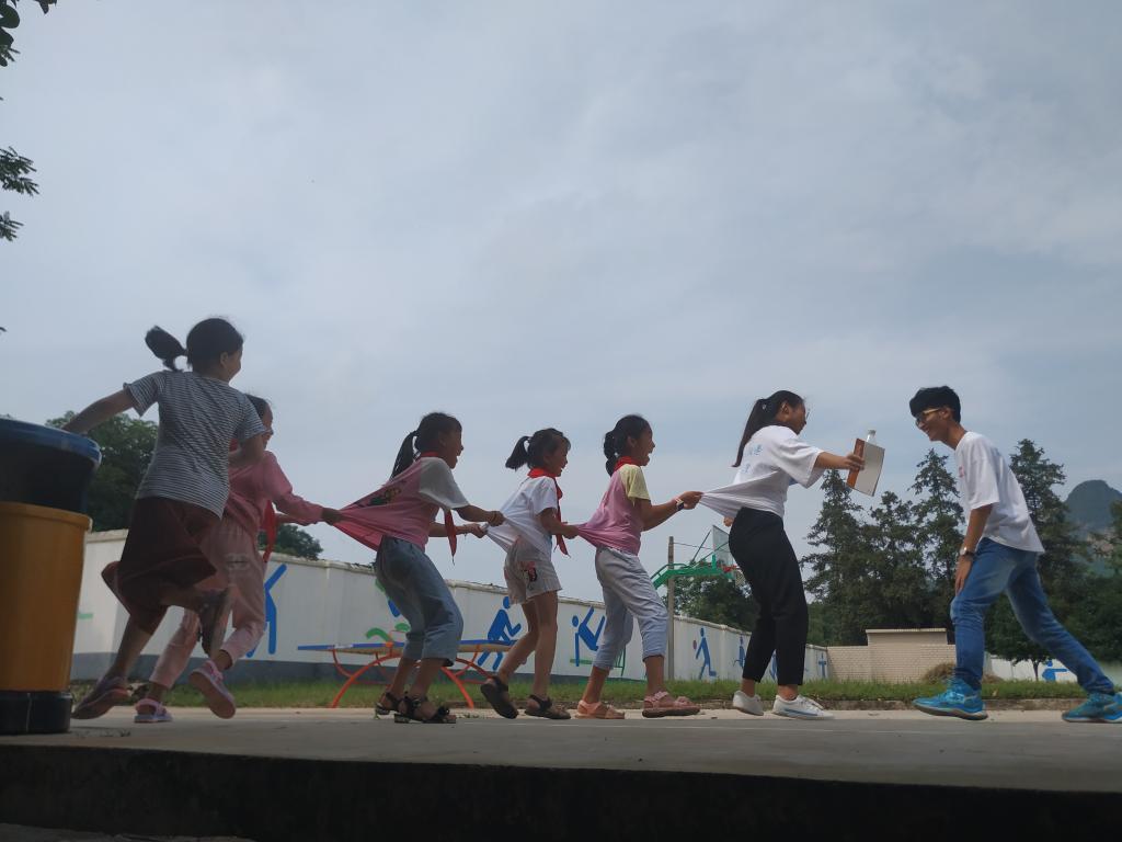 皇望小学有学前班及一至四年级共5个年级,志愿者们分成5队到各个年级进行支教活动。首先,志愿者们分别开展学前班的绘画、一年级的折纸等教学活动,在教室里和小朋友们进行交流;然后,志愿者们带着小朋友们到操场上进行课外活动,包含唱歌、做操、玩游戏等活动,小朋友们兴致盎然,在活动中体验合作、沟通和挑战,关注他们的心理成长。