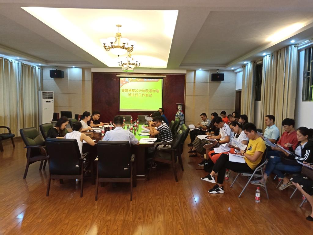 9月3日下午,管媒学院在07325召开2019年秋季学期班主任工作会议,学院党委书记陆平、学工组长陈俊乐、全体班主任和年级辅导员参加了会议。