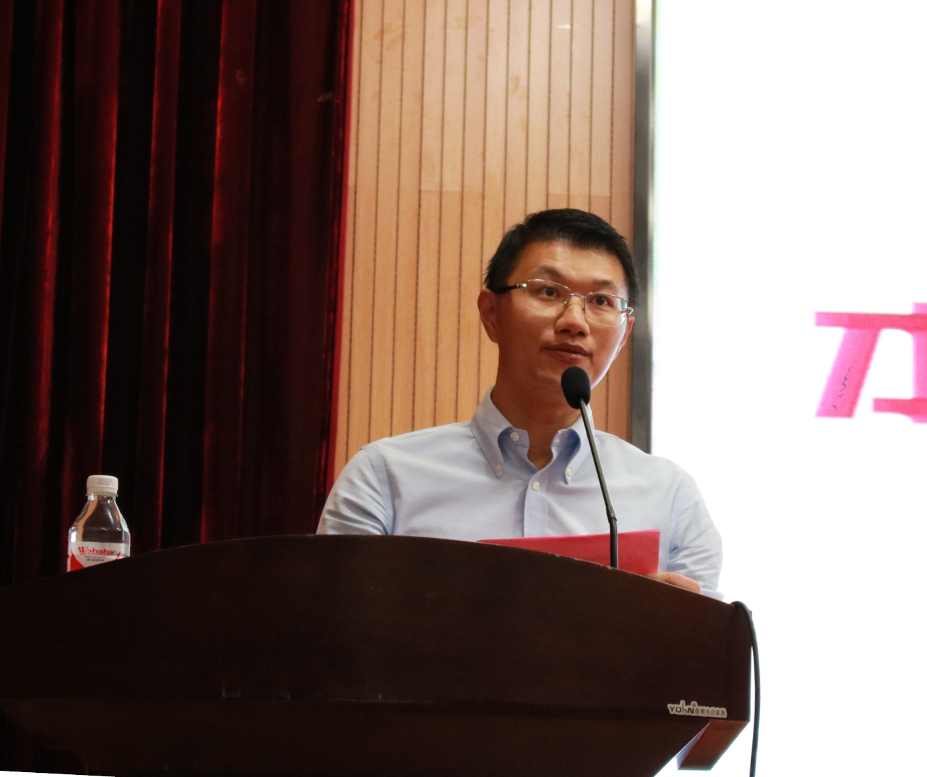 副院长郑文俊致辞,向新加入学院大家庭的新同学们表示热烈地欢迎。他勉励同学们一要勤学,多读书;二要勤思考,多研究;三要勤“玩”,会“玩”;四要勤爱,多互助。