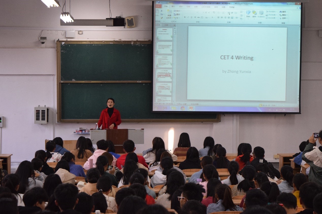 为帮助商学院2019级学生更好掌握英语四级考试写作与翻译技能,提高四级过级率。商学院特邀外国语学院钟韫霞老师于11月19日下午在雁山校区06207教室开展“四级写作与翻译技巧”专题讲座。