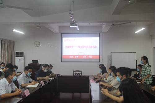 为深入了解疫情防控期间学生返校后的思想动态,以及学习、生活等实际情况,及时解答学生的疑惑,征集同学们提出的相关建议。5月20日,理学院在雁山校区07122会议室召开“抗疫复学——面对面”师生互动交流会,理学院党委书记欧阳胜权、院长肖剑荣,各教研室教师代表、全体辅导员、班主任代表以及各班级学生代表参加座谈会。会议由理学院学工组长杨剑主持。