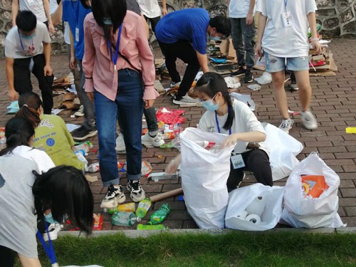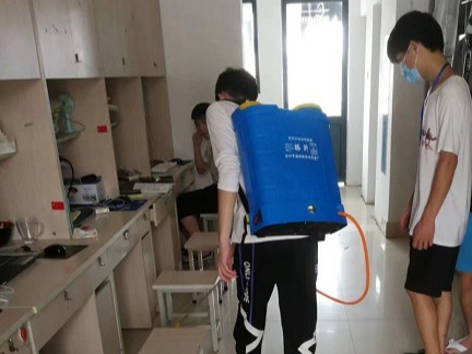 活动当天,志愿者们佩戴好工作牌、口罩、拿着收集袋前往自己所负责的楼层回收废品,并在整理废品后对宿舍进行清洁与消毒,重点对厕所、阳台、洗手池和门把手等容易滋生细菌的地方进行消毒,并提醒同学们经常通风。废品回收与消毒工作同时进行,志愿者们认真开展活动并及时在活动后交流总结。