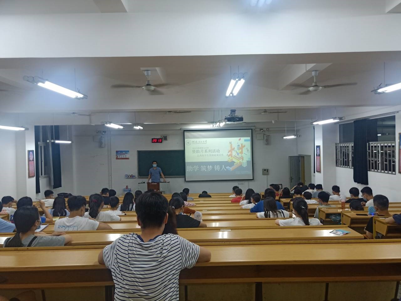 课堂上,各年级辅导员针对我校的学生资助政策耐心地向同学们做了介绍,针对大学期间国家奖学金、国家励志奖学金、国家助学金、自治区人民政府奖学金、国家助学贷款、应征入伍服义务兵役高等学校学生学费补偿国家助学贷款代偿及学费资助、广西高等学校毕业生学费和国家助学贷款补偿等资助政策等进行了详细的说明。