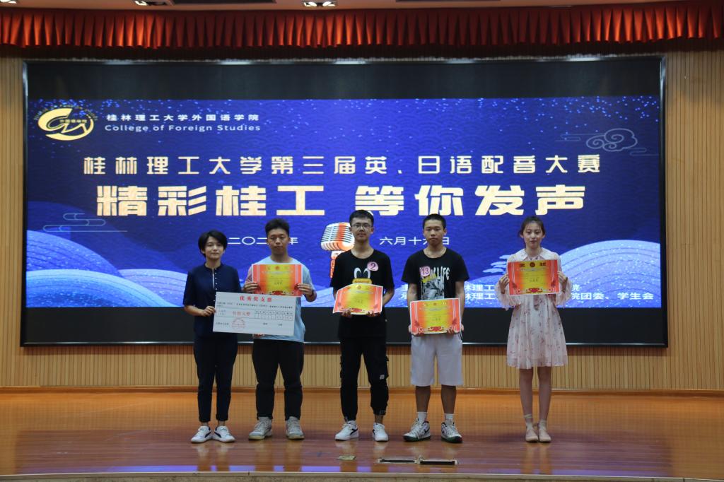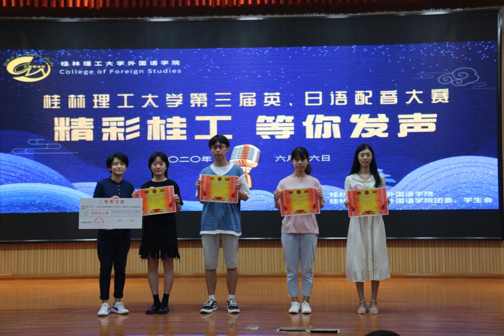 最终,在这场声音之战的激烈角逐中,获得特等奖的是来自外国语学院的西湖醋鱼团队,外国语学院院长唐渠为其颁奖;获得一等奖的是来自土木与建筑工程学院的小祺团队和LION团队,外国语学院日语教研室主任邓圆为其颁奖;获得二等奖的是来自艺术学院的APTX团队、来自商学院的Ethereal Sound团队和来自材料科学与工程学院的包饺子团队,外国语学院英语教研室副主任蒋霞为其颁奖;获得三等奖的是来自机械与控制工程学院的小小怪战队团队、来自土木与建筑工程学院的Flora团队、来自公共管理与传媒学院的Yellow Pepper团队和来自地球科学学院的头脑特工队团队,外国语学院英语教研室老师冯雪琦为其颁奖;获得优秀奖的是来自理学院的不知道叫啥团队、来自材料科学与工程学院的艺声阁团队、来自环境科学与工程学院的Baby Queen团队和来自信息科学与工程学院的CTB Band团队,外国语学院英语教研室老师冯雪琦为其颁奖。