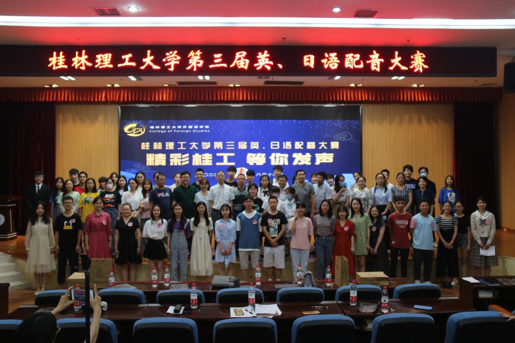 2020年6月16日下午,外国语学院在我校雁山校区图书馆报告厅顺利举办英国上市公司365第三届英、日语配音大赛决赛,线上同步直播。本次活动邀请了学生工作部(处)张成龙部(处)长、教务处唐国强副处长、化学与生物工程学院匡小军院长、测绘地理信息学院刘立龙院长、商学院蒙永亨副院长、机械与控制工程学院王迎波副书记、校团委郭彦汝老师以及外国语学院领导班子全体成员作为嘉宾莅临活动现场,并邀请了日语教研室主任邓圆老师和英语教研室副主任蒋霞老师、冯雪琦老师担任本次大赛专业评委,同时由校、院级学生会共15名代表作为大众评委。全校100名学生线下参与本次比赛,9300余名师生观看线上直播。