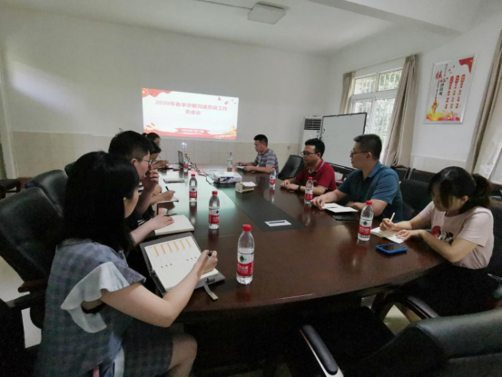 会议伊始,学院专职组织员梁译匀、学工组副组长夏晴和学院团委副书记舒强,分别从学院党建工作、学生工作和团委工作进行了汇报,总结了2020年春季学期工作开展状况,同时也指出了目前所面临的问题和困难,并针对性的提出了建议。随后,党委副书记钟立军根据学院2020年中心工作和各项考核指标体系进行了工作梳理,强调平时工作开展要高度重视、落到实处、做到细致;同时,根据学工队伍调整将学院下一阶段学生工作进行了重点部署。最后,党委书记欧阳胜权作会议总结,他首先对本学期学生工作取得的成绩表示认可,同时也提出了3点希望:第一:个人定位有特色,个人发展既要紧抓学校、学院平台,又要根据平台需求,来进行个人定位,发展自身能力。第二:理论学习要强化,补齐工作短板,努力提升素质能力。第三:工作开展树标杆,要高标准、严要求抓好工作落实。