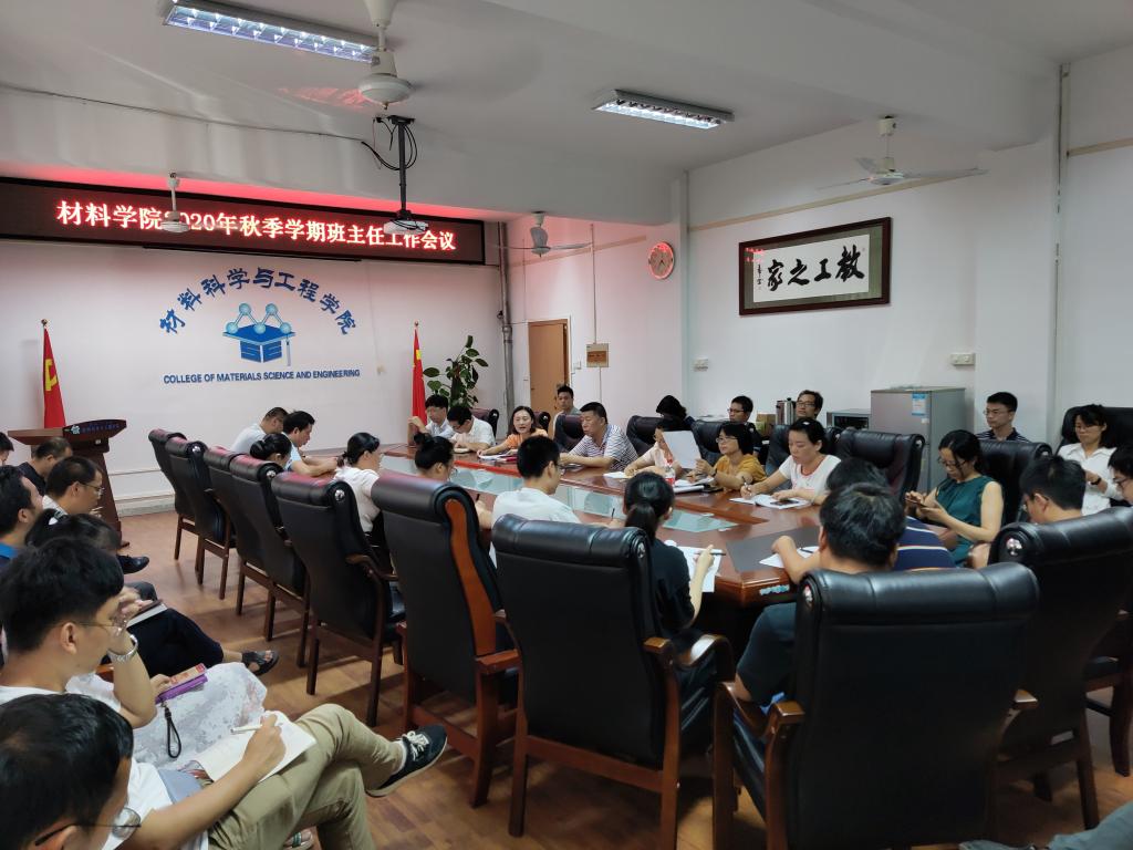 2020年9月1日下午,材料学院在屏风校区2308会议室召开2020年秋季学期班主任工作会议,就秋季新学期的班主任工作行布置,学院党委书记李治、学院党委副书记徐时、各年级辅导员、全体班主任参加会议。