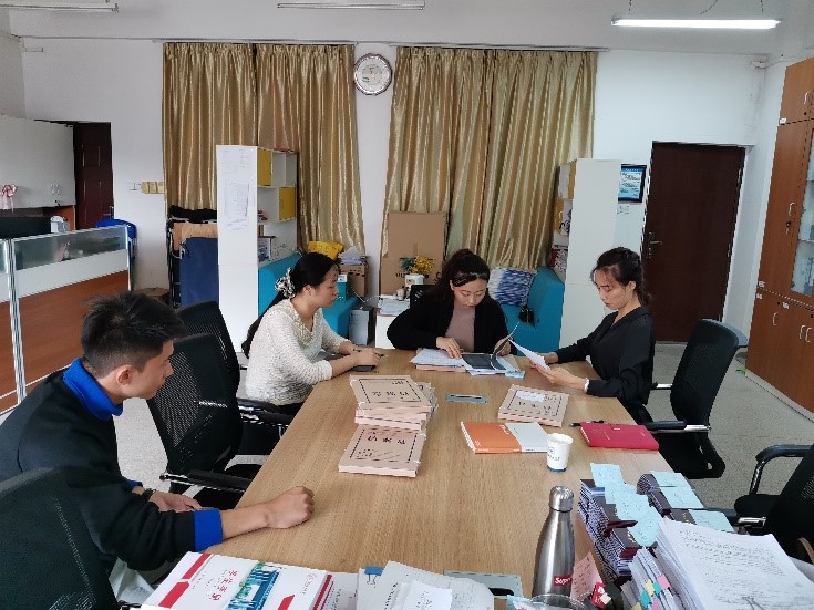 校心理咨询中心吕佳微老师(右二)指导学院心理工作
