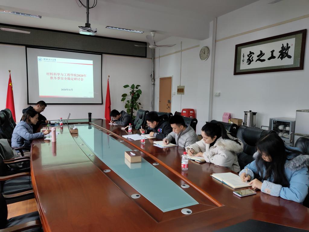 11月27日上午,材料学院在屏风校区2308会议室召开2020年秋冬季安全稳定工作研讨会,学院全体学工成员参加,会议由学院党委副书记徐时主持。
