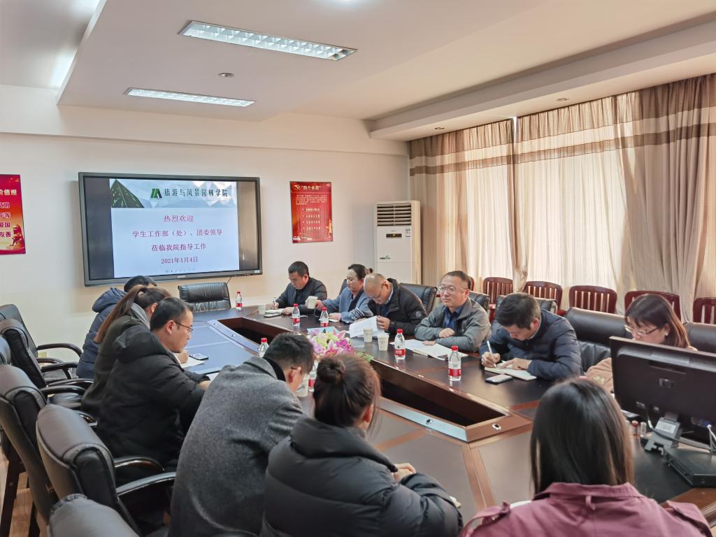 1月4日上午,学工部(处)部(处)长张成龙、团委书记李雨带领学工部(处)、团委领导班子一行6人到旅游与风景园林学院开展学生工作调研,旅游与风景园林学院党委副书记罗义淞和全体辅导员参加会议。