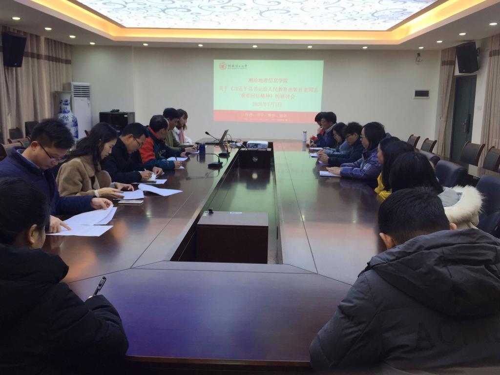 为了深入学习贯彻习近平总书记给人民教育出版社老同志重要回信精神,传达学校关于学习习近平总书记给人民教育出版社老同志重要回信的精神实质和重要意义,1月7日上午,测绘学院在雁山02226会议室召开了专题学习会。会议由王式太副院长主持,全体教师参加了会议。
