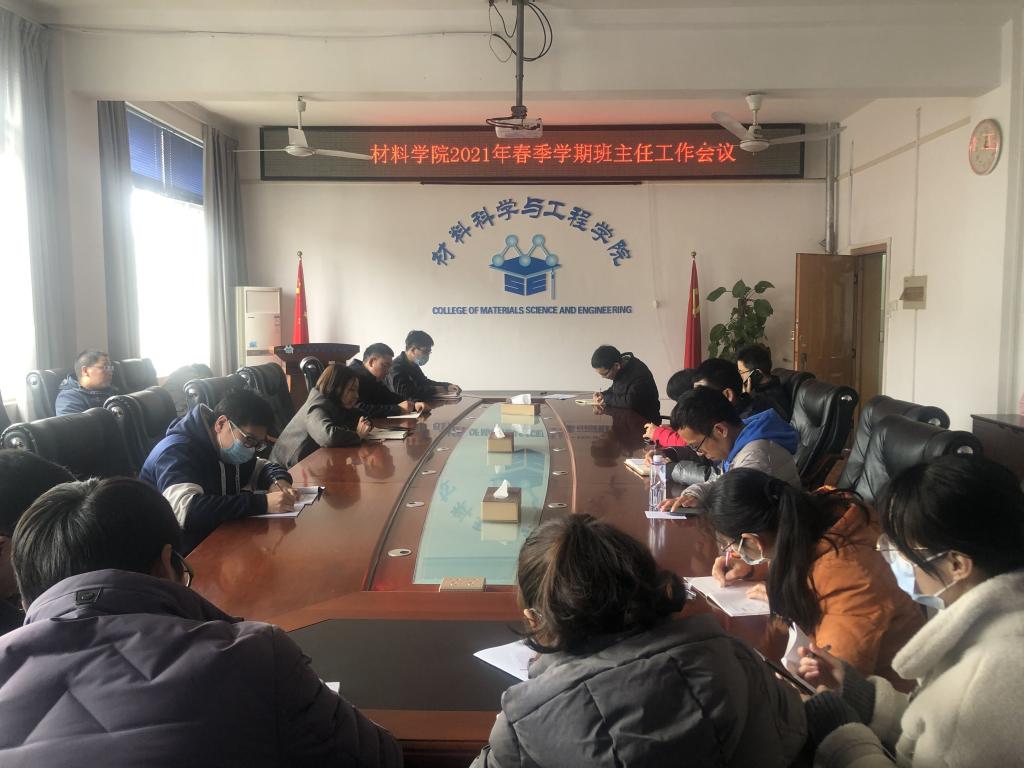 2021年3月2日下午,材料科学与工程学院在屏风校区2308会议室召开了新学期开学初班主任工作会议,各年级辅导员、班主任参加会议,会议由学院党委副书记徐时主持。