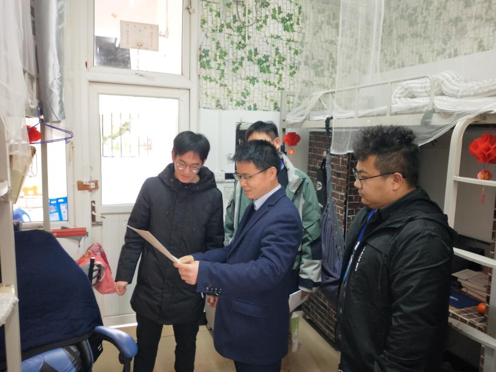 梁书记在走访学院研究生宿舍时,热切关心了研究生们在寒假期间的生活情况,并听取了他们新学期的科研计划。梁书记表示,研究生在校要多看文献,勤做研究,利用好学校的图书资源和实验室资源,以崭新的精神面貌投入到新学期的学习中。匡院长在深入学院本科生宿舍时,认真询问了同学们假期的生活,并认真听取了同学们新学期的学习计划。匡院长表示,同学们在寝室里要和睦共处、体谅包容、互相帮助,积极发挥团队协作精神,营造良好的学习生活环境;同时,把课余时间充分利用起来,积极参加各类课外活动,全面提升自身素质。