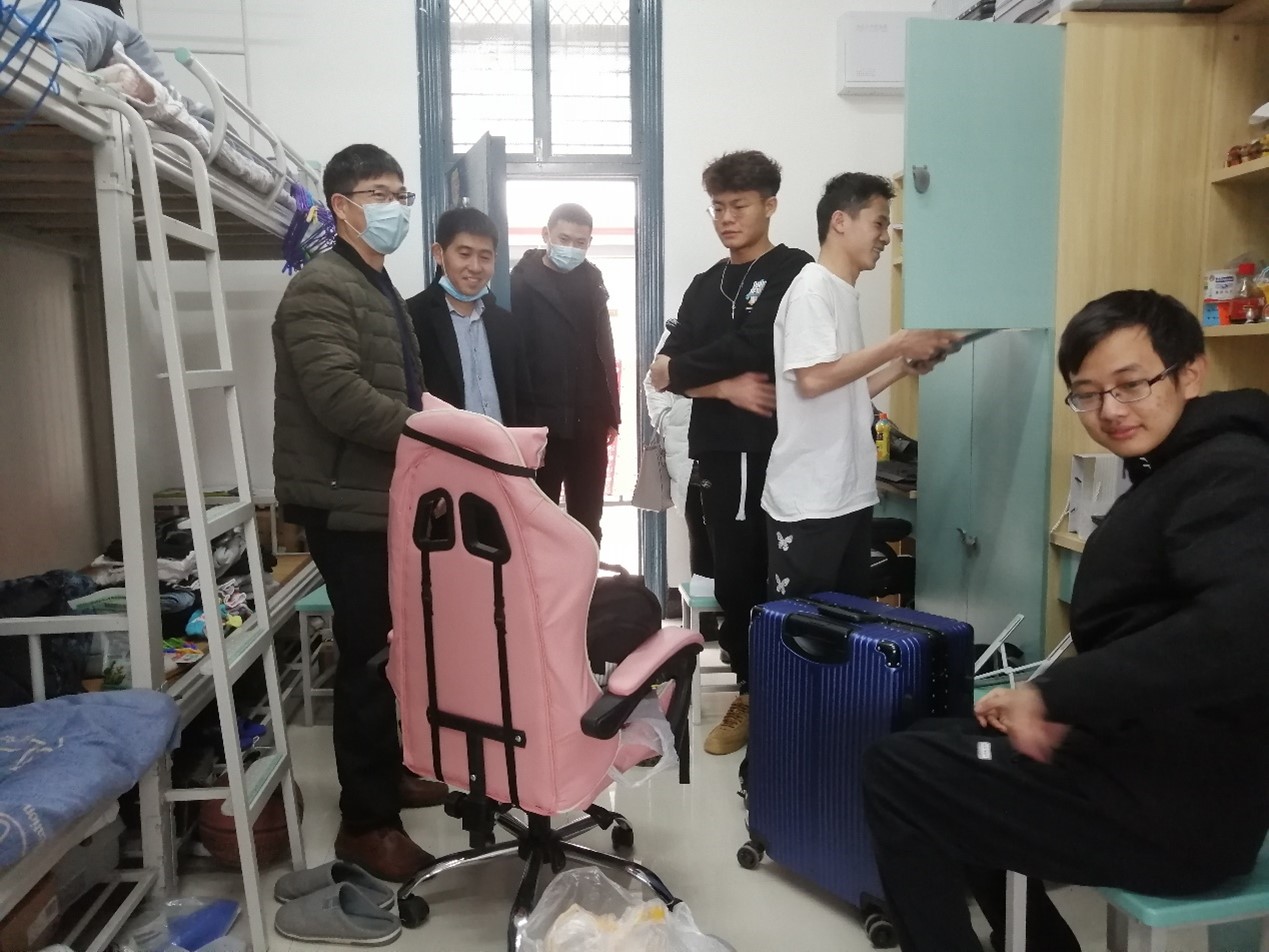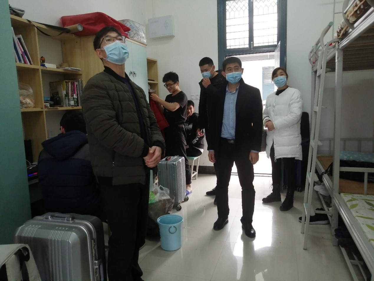 走访过程中,学院领导与宿舍的同学们进行深入交谈,并询问学生学习情况、宿舍供水设备是否损坏以及了解大家寒假生活的情况和返校途中的点点滴滴。江云清书记嘱咐同学们配合学校做好疫情防控工作,减少聚集流动,坚持做好返校后14天健康观测,并强调舍友之间要相互关心、相互帮助,积极发挥团队协作精神,共同营造良好的学习、生活环境,以崭新的精神面貌投入到新学期。