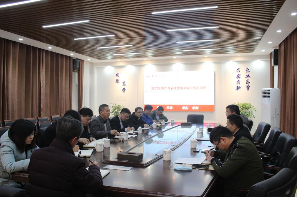 2021年3月4日上午,学校党委副书记齐俊斌带队检查理学院春季学期开学准备工作情况,学校党委常委、宣传部部长叶昊、学校党委组织部副部长陈小波以及校办副主任黄敬秀陪同检查。院领导班子全体成员、院长助理、办公室主任参加汇报会。