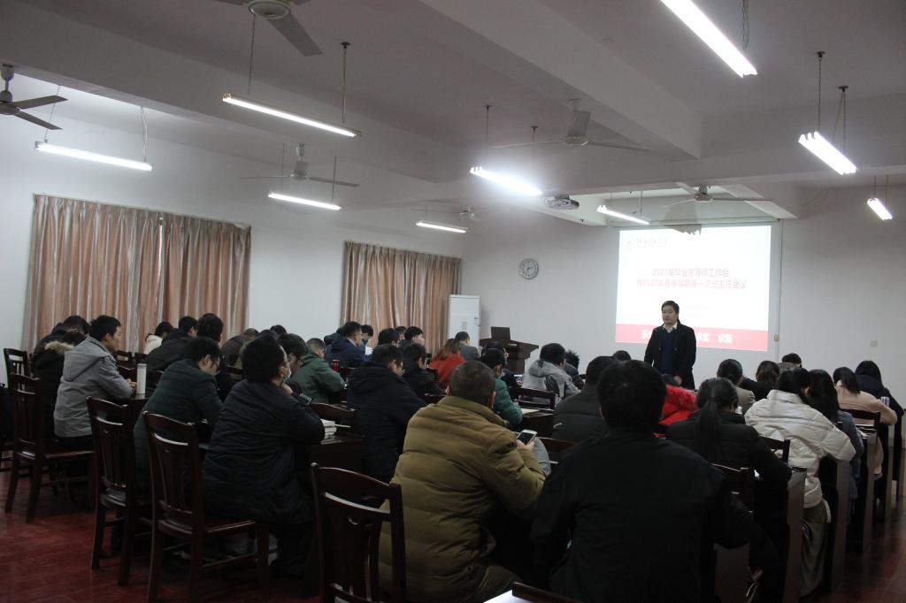 会上,蒋远营副院长围绕毕业生实习返校、毕业论文撰写、考研面试和调剂以及就业选择等方面强调毕业生导师及班主任要与学生常联系、勤沟通、多关心,切勿出现失联的情况,同时也要不断地提高学生的毕业论文质量以及深拓学生的就业渠道,积极主动地关注学生的状态。紧接着,院党委副书记钟立军就春季学期开学初的班主任相关工作进行了具体布置:一是要开好新学期第一次班会,在专业学习、疫情防控、电信网络诈骗、春季流行疾病防控、心理健康以及宿舍、教室、实验室等公共场所的环境卫生要做好教育引导;二是要落实三必谈工作内容,对于挂科等学习后进的学生、有违纪处分的学生和休学、降级等重点关注的学生要及时进行一对一谈话。钟立军副书记也紧围绕毕业生就业工作强调导师和班主任要多给毕业生推送选调生、援疆项目、西部计划和三支一扶等基层就业资讯,拓宽就业渠道,同时多鼓励引导学生积极参加春招。最后,院长肖剑荣做会议总结,他指出老师们一是要以赛促学,自身积极主动投入到大创、互联网+等竞赛活动中去,从而带动学生培养质量的提高;二是要结合学生专业特点,培养方式互学互补,取长补短,不断提升学生英语四六级过级率和考研通过率;三是要深入践行班主任五个一和辅导员十个一,走进学生、引导学生,从而提高学生的综合素质。