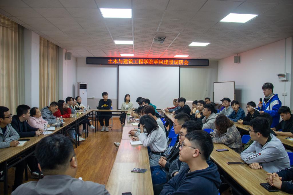 本次会议,对土木与建筑工程学院学风问题产生的原因进行了分析研讨,并收集到同学们的宝贵意见,为学院制定下一步的学风建设方案提供了重要的依据。