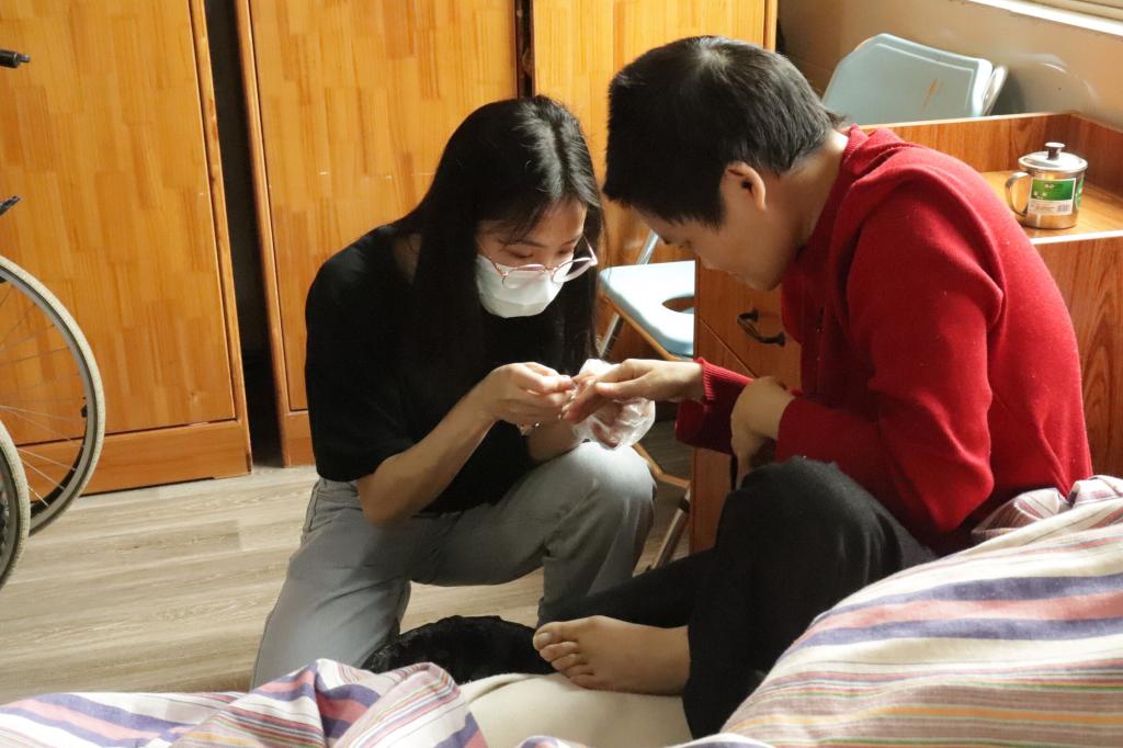 同学们怀着诚挚之心,带着慰问品来到敬老院,老人们也热烈欢迎志愿者的到来。活动过程中,志愿者分工合作,女同学帮助老人修剪指甲、理发,分发慰问品给老人,教老人做保健操,陪老人倾心交谈,倾听老人讲述个人经历;男同学打扫院落房间、擦洗桌椅栏杆,给老人提供一个舒适的环境。平日里清静的敬老院一下子热闹起来,院里一片欢声笑语,暖意融融;大家用朴实而真诚的行动为老人们送去了一份温暖与关爱。
