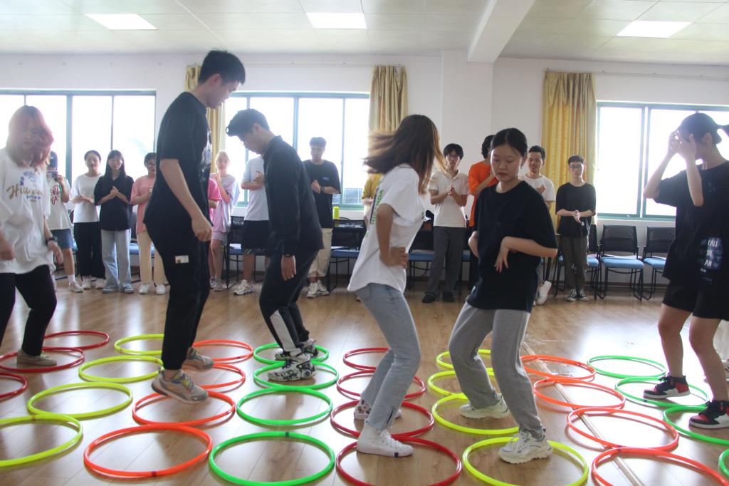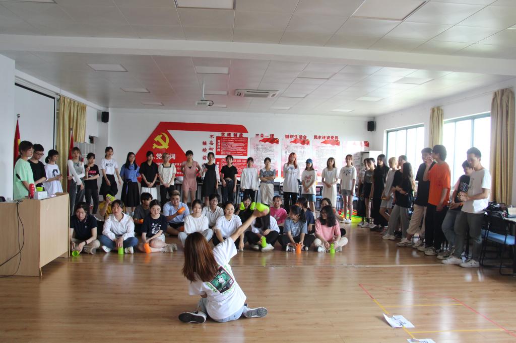 活动开始前,莫老师带领同学们进行“O”呼吸热身训练,气氛慢慢活跃起来。热身活动之后,依次进行“让我认识你—即兴hello歌”、“让我们成为朋友—卡农bus游戏”、“让我们走进自己—音乐节奏创编”、“让我们齐心协力—圈子里的友情”活动环节,生动有趣的音乐律动游戏让师生从陌生到熟悉,现场气氛融洽和谐。学生从被动到主动的过程很好的诠释了这次活动的积极效果,不但能激发学生的潜能,还鼓励学生勇敢的走出自己的舒适圈,关注环境、关注自己的内心。