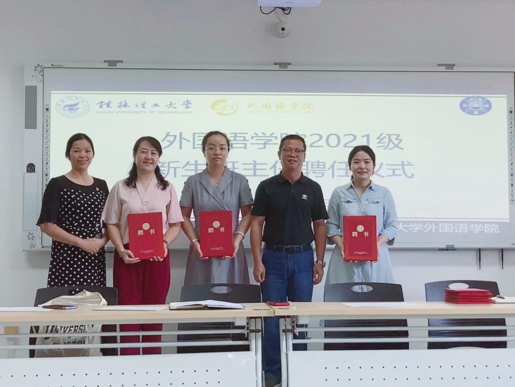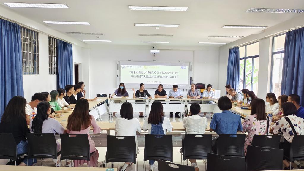 为夯实2021年迎新工作基础,提升外国语学院新生班主任与班主任助理工作队伍的管理能力和服务水平,强化班级为载体的思政教育阵地,切实增强全员育人的合力,8月31日下午,学院举办的2021级新生班主任与班主任助培训会暨聘任仪式在04305顺利举行。学院党委书记谢济光、党委副书记邓洁琼出席会议,全体2021级新生班主任、班主任助理参加了会议。会议由学院团委副书记(主持工作)、新生辅导员黎云鹏主持。