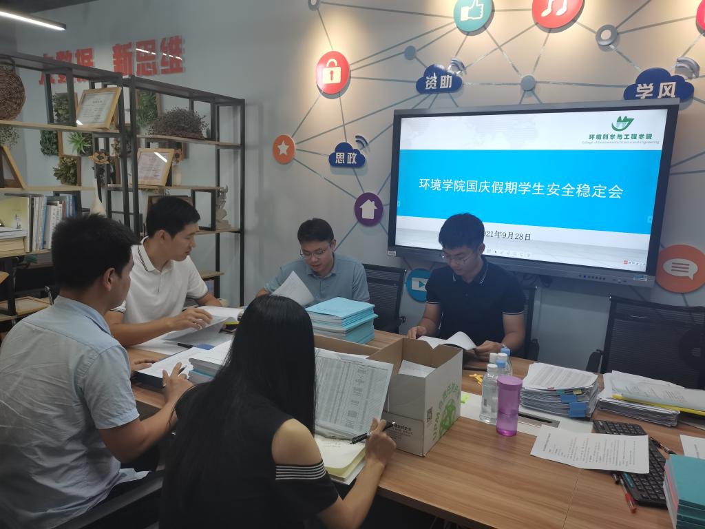为进一步做好国庆假期学生安全稳定和疫情防控教育工作,9月28日下午,环境学院在雁山校区12408会议室召开国庆假期学生安全防范工作布置会。学院党委副书记郝文佳、全体辅导员参加本次会议,会议由学院党委副书记郝文佳主持。