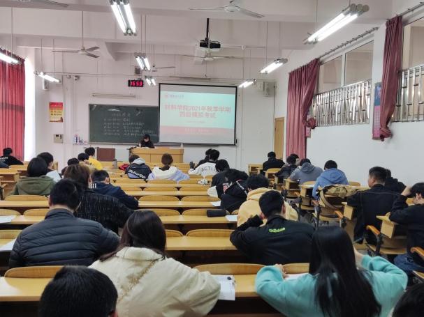 为进一步调动同学们英语学习的积极性,帮助同学们更加沉着自信地迎接全国大学生英语四级考试,材料科学与工程学院于12月4日下午在屏风校区9303教室组织大学英语四级模拟考试。
