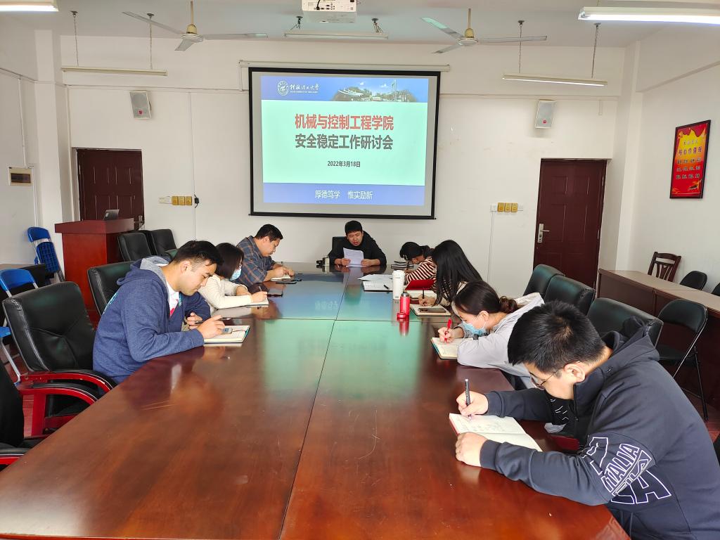 3月18日上午,机械与控制工程学院召开安全稳定工作专题研讨会,会议由学院党委副书记王迎波主持,学院全体辅导员参加会议。
