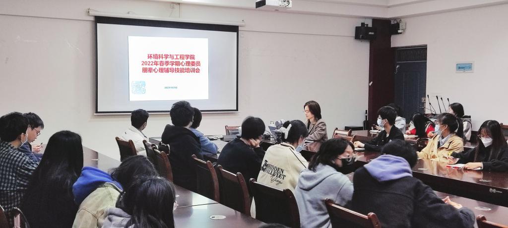 为进一步提高环境科学与工程学院心理委员的素质能力和工作水平,帮助同学们保持健康积极阳光的心态,发挥朋辈互助的作用。学院于4月4日晚在雁山校区12407会议室召开“心理委员朋辈心理辅导技能”专题培训会,培训由学院辅导员黄甜甜授课,全体心理委员参加培训。