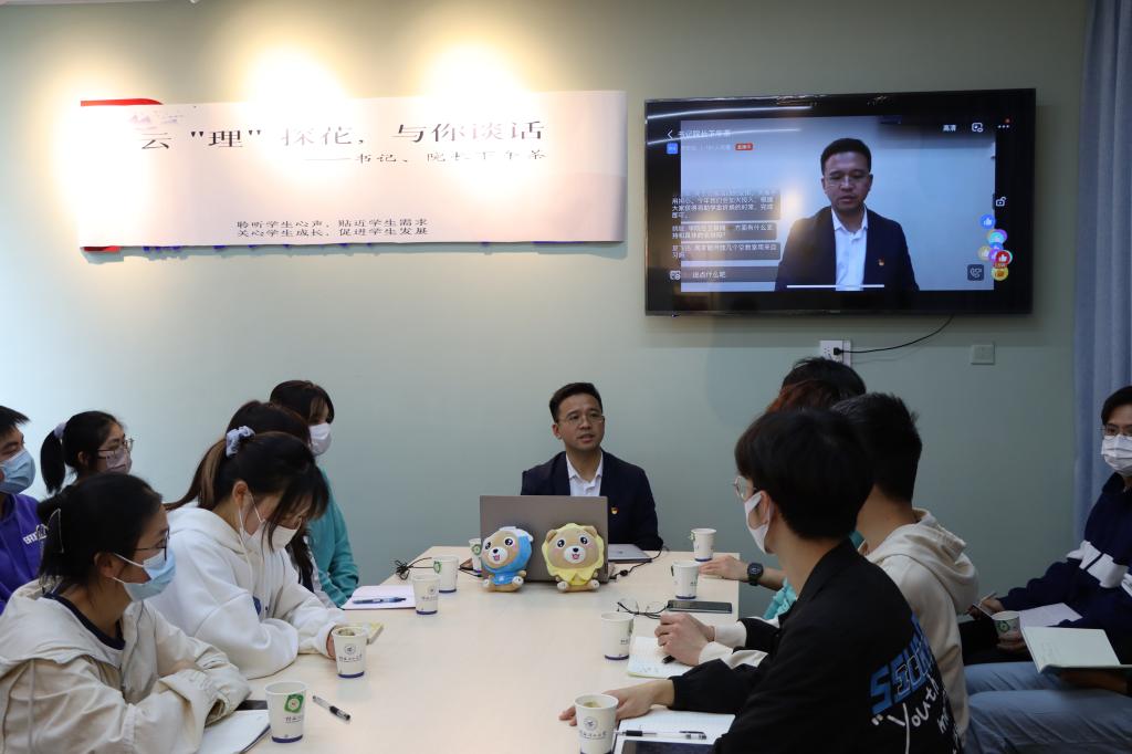 活动伊始,理学院党委书记欧阳胜权代表学院向因疫情不能正常放假和目前还未返校的同学们表达了关心和慰问,同时向同学们简单介绍了理学院的专业特色和课程建设情况,增强理学院同学对本专业的了解度和自信心。随后,与会同学们从专业学习、实习实践、第二课堂活动、专业就业、宿舍环境、疫情防控等方面纷纷畅所欲言,理学院党委书记欧阳胜权结合学校和理学院实际情况和相关政策,与同学们亲切交谈。