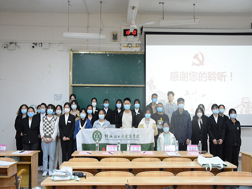 4月16日,商学院于雁山校区06104教室举办以“喜迎二十大,永远跟党走”为主题的资助政策宣传月系列活动之资助演讲比赛,商学院负责资助专项工作的辅导员王贤出席本次活动。