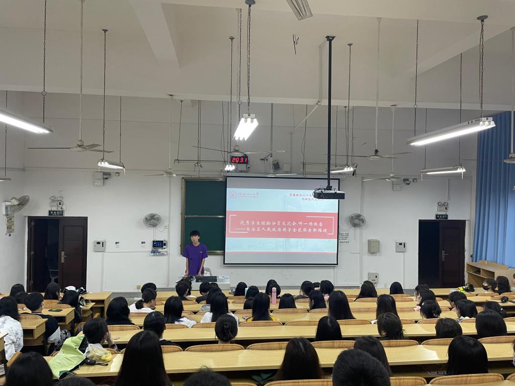 为发掘先进典型,发挥身边人、身边事的引领示范作用,激励学院学生奋勇拼搏、积极进取、不断完善自我,旅游与风景园林学院于5月22日在雁山校区04620教室开展资助育人文化节系列活动“听一场报告”——优秀学生经验分享交流会,会议由学院辅导员唐兰主持。