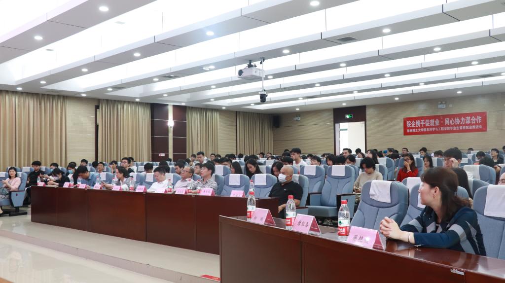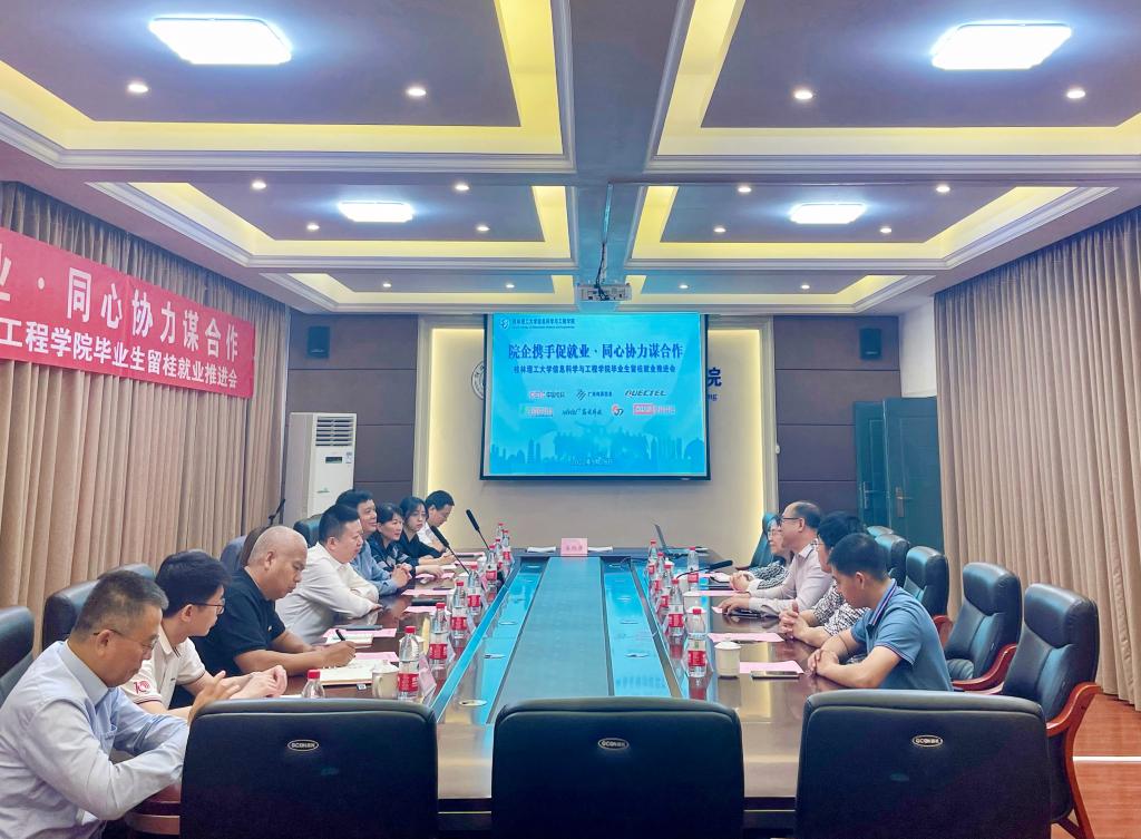 为更好地落实学校2022届毕业生就业工作部署,扎实推进信息科学与工程学院2022届毕业生就业工作,5月28日上午,信息科学与工程学院成功举办“院企携手促就业·同心协力谋合作”毕业生留桂就业系列推进活动。学校招生就业处副处长迟国东、桂林市人才服务中心副主任唐伟和中国电子科技集团公司第三十四研究所、桂林移远通信技术有限公司、桂林海威科技股份有限公司、桂林鑫爱联电子信息有限公司、桂林力源粮油食品集团有限公司、桂林智神信息技术股份有限公司、广西纯真信息技术有限公司等七家企业负责人应邀出席推进会,学院主要领导和2022届未就业毕业生200多人参加活动。