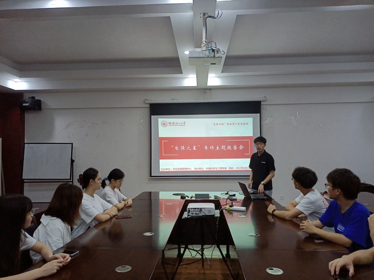 为使学生树立积极乐观的人生态度,学会积极进取的处事方法,培养自强自立的精神,环境科学与工程学院于6月11日晚在12407举办榜样行动系列活动“自强之星”专场主题报告会。本次会议邀请了我校2021年度“自强之星”刘苏鹏进行经验分享,环境科学与工程学院近百名学生参加。