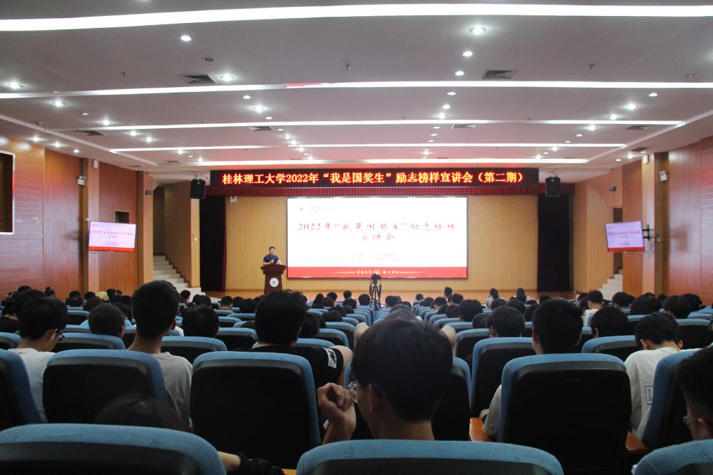 为了充分发挥优秀榜样的典型示范作用,引导广大青年学生增强树立勤奋学习、自强不息、奋勇拼搏的进取意识,在校园内形成争先创优、奋发向上的浓厚学习氛围,大力宣传国家资助政策及资助育人成效。6月13日晚,由学生资助管理中心主办,公共管理与传媒学院承办的“我是国奖生”励志榜样宣讲会(第二期)在雁山校区图书馆报告厅举办。公共管理与传媒学院党委副书记杨晓,学校学生资助工作办公室彭广生、王淇淇,党委宣传部孙谦谦,二级学院资助辅导员代表以及200余名学生代表参与活动。